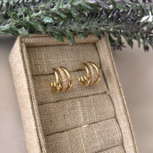 Argola Dourada Elos Cravejados quantidade