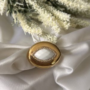 Anel Dourado Com Pedra Branca