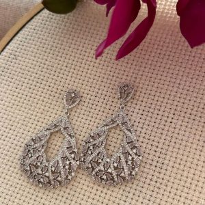 Brinco Ródio Branco Cravejado Zircomia Rose